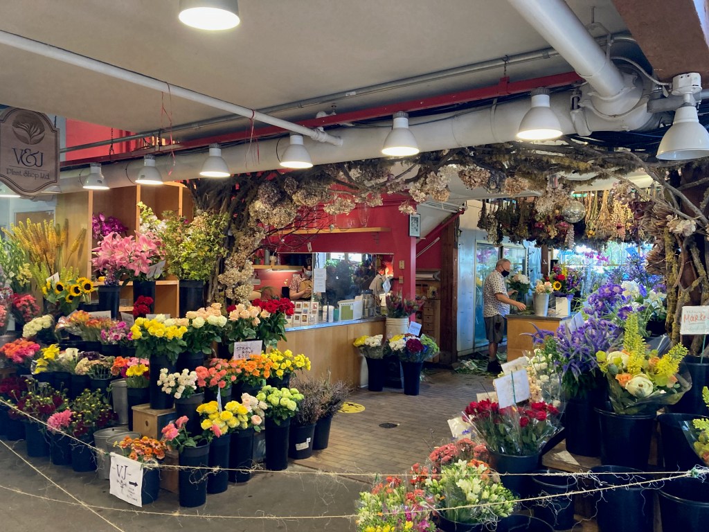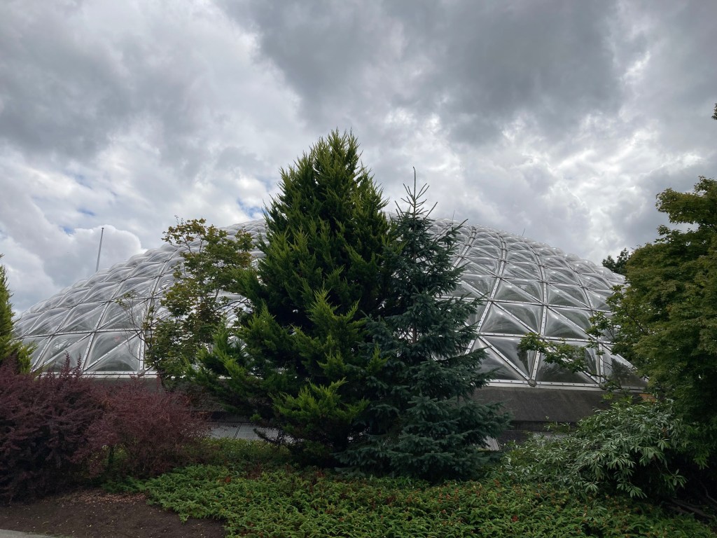 We walked to the SkyTrain about a block away and took it to the Queen Elizabeth Park and hoped we could get a table at Seasons. It was Saturday afternoon, but I went in and nicely asked if there was anything and we luckily got a table, albeit with a partial view, but with a super waiter. The food was delicious with large portions. We had Caesar salad, and some fried squid and prawns and Charles had clam chowder. Everyone was happy to walk around the stunning park after lunch, and enjoy the views of Vancouver. I think Sway even had dessert. She is a good eater and again well behaved at the table.
