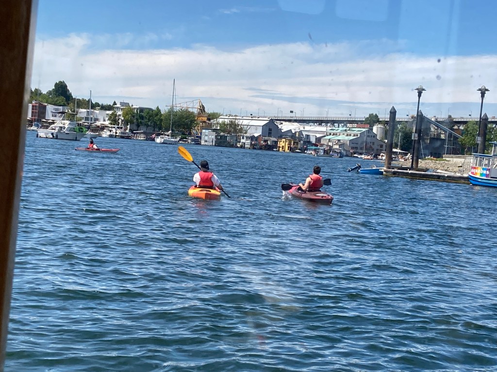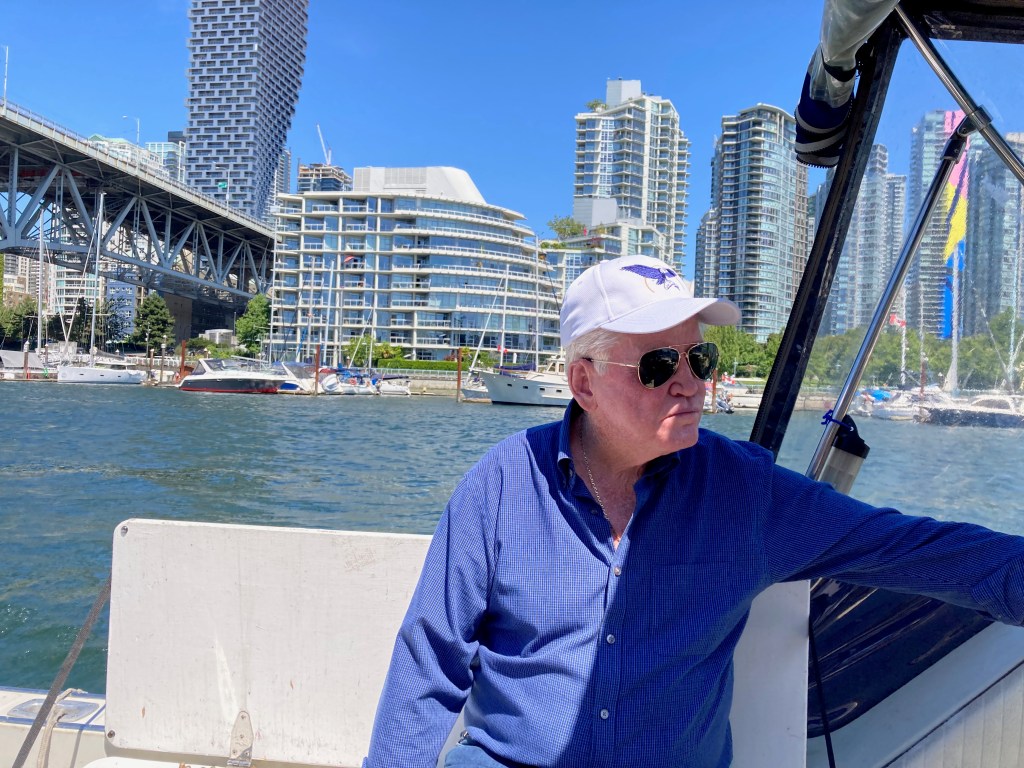 Corby who captains a whale watching vessel out of Granville Island, worked part of the day, while Kate brought Sway for more swimming at the hotel and then we all met at the island, where I bought food for dinner; just love the fresh fish and vegetables there, and the desserts too. We then connected with Niels. We were in the Boston Whaler that Corby and Kate share own with another couple. It is spacious, and comfortable and Corby took us by water to North Vancouver for lunch at a large restaurant called Joey at The Ship Yards. It was really more than a restaurant, actually part of a centre for activities like skating in the winter and waterpark in the summer. The food was good. I had dumplings and lettuce wraps. Someone had a pressed hamburger and lots of iced tea and cold drinks all around. Then we toured the waters around Vancouver, and headed back to Corby and Kates where I started to prepare dinner.