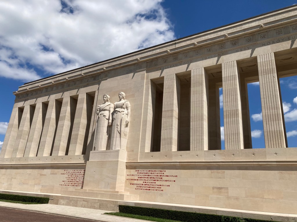We met at Chateau Thierry, where the barge was docked, a charming area which was nestled in the champagne producing slopes. The next day we left from there to visit a WW1 battlefield and cemetery of Belleau-Wood. We had visited Vimy years before. See:https://suddenly70.ca/2017/10/23/pilgrimage-to-france-part-2/ and thought we had maybe had enough of WW1 and death, but in fact we were mesmerized by the graves and the sadness of it all, and the waste of it all. Checking out the graves of 18 year olds, mostly with crosses, but some with Jewish stars and their names, made it all very real. We watched as the flag was lowered at the end of the day in a semi-formal ceremony, and allowed some tears to flow.