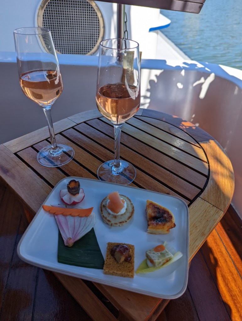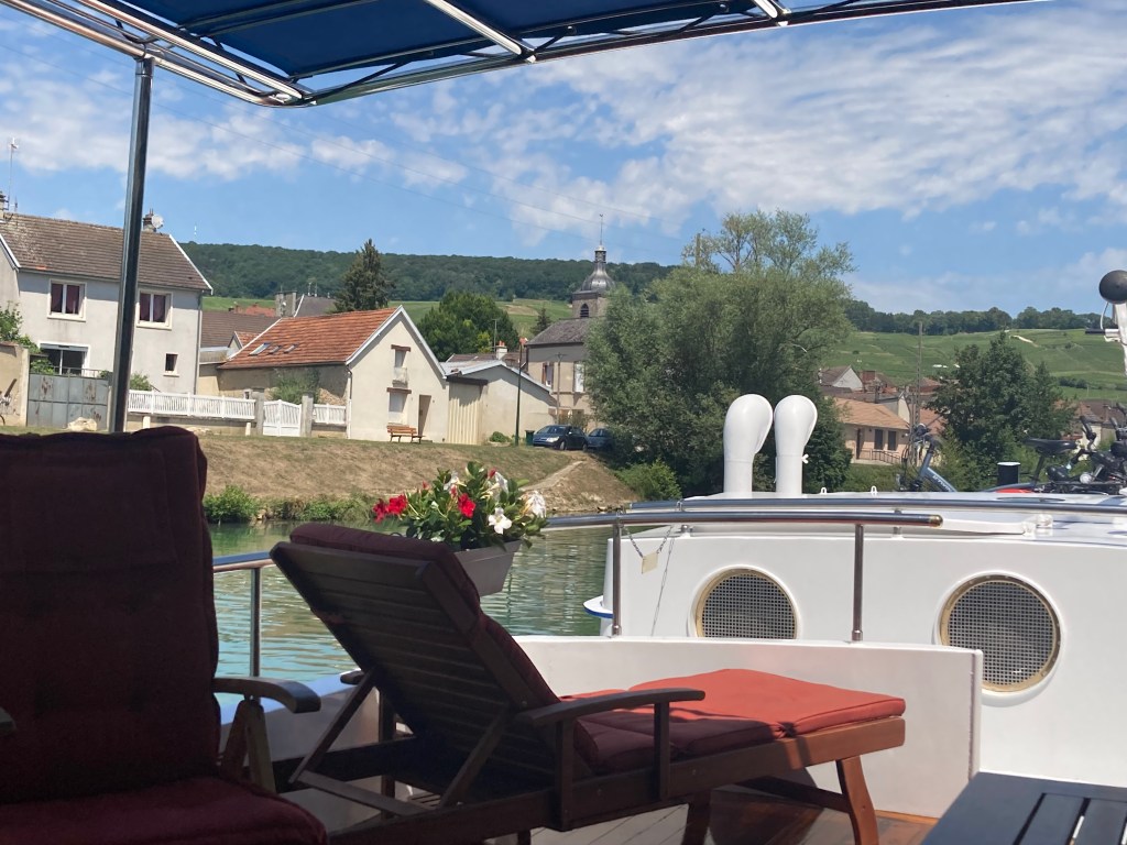 We had booked a barge trip before Covid and finally decided to take it this past summer of ’22 after our Globe and Mail trip to Bordeaux. A little crazy it seemed, but we were already in France and just needed to fly from Bordeaux to Paris to meet up with the Barge people at a small hotel, called The Madison. It was a lovely sunny day and we arrived early and decided to have lunch at a small café around the corner sitting outside, and watching the parade of people. We had quiche and salad, and then headed back to the hotel to meet up with all the other folks on the trip. There were only 7 people booked for this trip including ourselves, and 6 crew. We took a van to the barge, called C’est la Vie, and by the time we got there we had learned new names and got to know a bit about new people. I think most people take barge trips with their friends, so this was an adventure and at a week, max, we just had to get along, and we did!