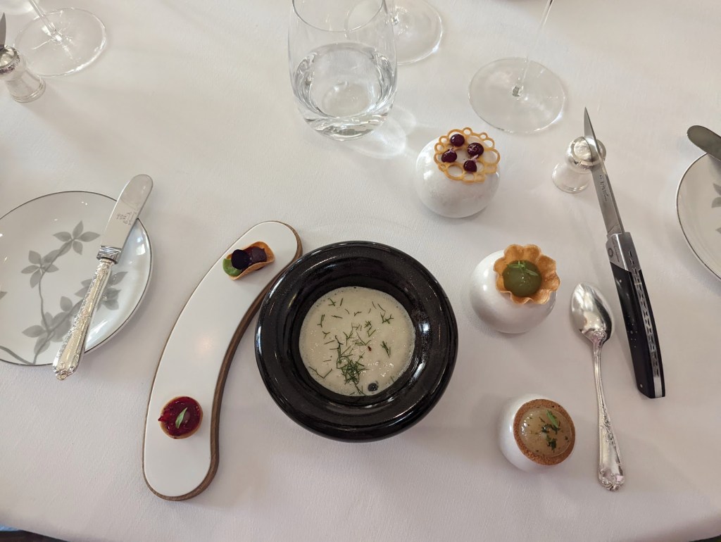 Back on board we had a wonderful dinner once again, enjoying terrific service by the staff, and visits from the chef, J.P. Every meal was special and I am glad that I took photos. We were all getting along, learning about each others families, but frankly, much of what I learned went into the computer of my brain, was sorted into categories of importance, and deleted. All very interesting at the time, but we felt we would never see any of our fellow passengers again. Glad I have the pictures though. The next day was a fun day of making chocolates at Thibaut, a delicious and fascinating skill. We made some to take as gifts and ate quite a bit, then we cruised on the Canal Lateral of the Marne and looked forward to a very special evening and dinner at the famous 2 Michelin Starred restaurant Les Crayères in Reims.. I dressed up for the evening, and totally enjoyed the splendid atmosphere of the famed restaurant. We sat at a round table and were served splendidly; many courses, wines as well, and then wandered on the grounds before a long drive home, snoozing as we went. Nice to have a van driver.