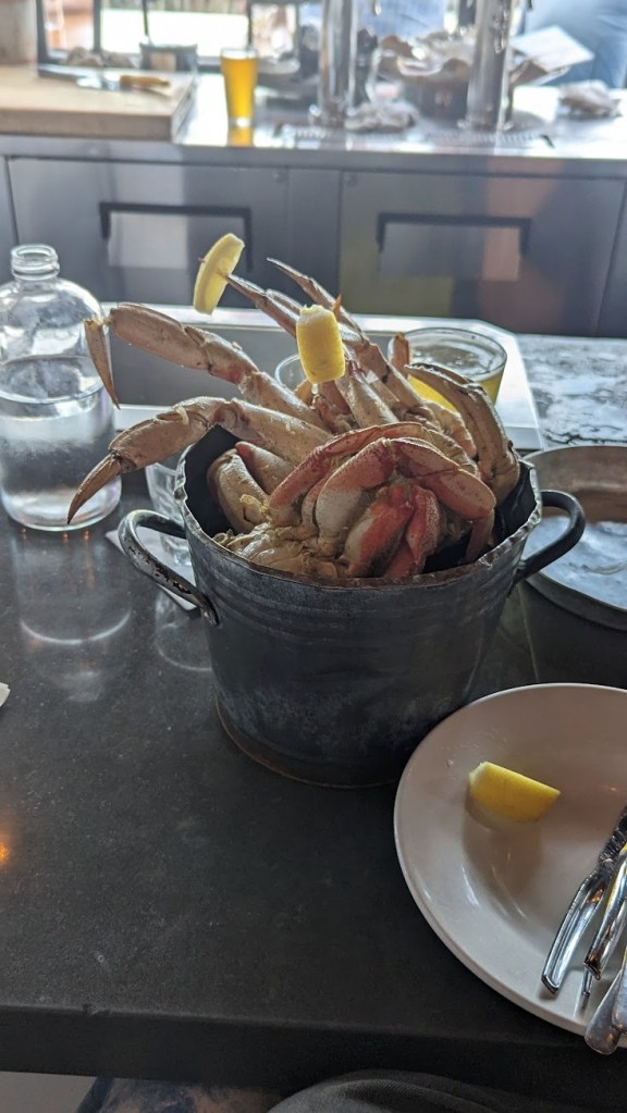 The rooms are quite charming and we slept well until we woke early for our flight to Vancouver, and I found a lovely personal note from Air Canada telling us our 7:30 am flight was cancelled, but they could put us on a flight at 7:00pm. We had a small plane to catch in Vancouver and appointments etc. So after trying to figure out how to get there on AC, Charles suggested Westjet, and there were two seats in the front of the plane that was to leave at 8:15. We made it, arrived in Vancouver in time for lunch with Corby, and then after a delicious meal at Joe Fortes, including crab cakes, Caesar salad with salmon and shrimp cocktail, we headed to the check in for Harbor Air’s flight to Gibsons to see Niels. We had a a few hours in the lounge, and that was a very good thing, as I had to call Aeroplan and make sure that our booking home from Vancouver was not cancelled because the outbound flight was. I remembered that if you don’t go on the outbound flight, the return one would be cancelled. Not a pretty thought. I had booked the whole itinerary on points. I spent one hour waiting on the phone to get this sorted, and did. However, I would have to apply to Credits.com at Air Canada on our return to make sure we got the points put back in our account, about 150,000, as we were travelling business class. ( after a month and a half of trying, sending documents etc. etc. to Air Canada, I finally reached them by phone this week and managed to get the points restored and the taxes returned. This exercise is not for the faint of heart or the impatient)
