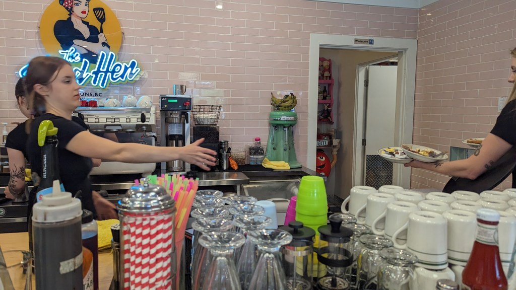 Our final morning I really screwed up by not realizing that our little plane had changed its departure time. I only saw the outgoing time from Vancouver not this return flight. There is nothing quite as deflating as being told your plane has departed when you arrive at the terminal, and there was only one seat on the next flight. My bad. About the time I was thinking about taking the ferry, Niels suggested just that, and there was one in a few hours so we headed to his fave breakfast placed called Mad Hen. What a fun spot and what good food. It was fashioned as a real diner. Then dear, patient Niels took us about a half hour a way to the ferry terminal and we walked on with our carry ons. We didn’t have to pay as it was assumed we were on a return trip. And amazingly when I wrote to Harbor Air and told them about my stupidity they actually refunded our fares. Actually they had tried to text us, but had written down the wrong number so they said it was their fault. Amazing!