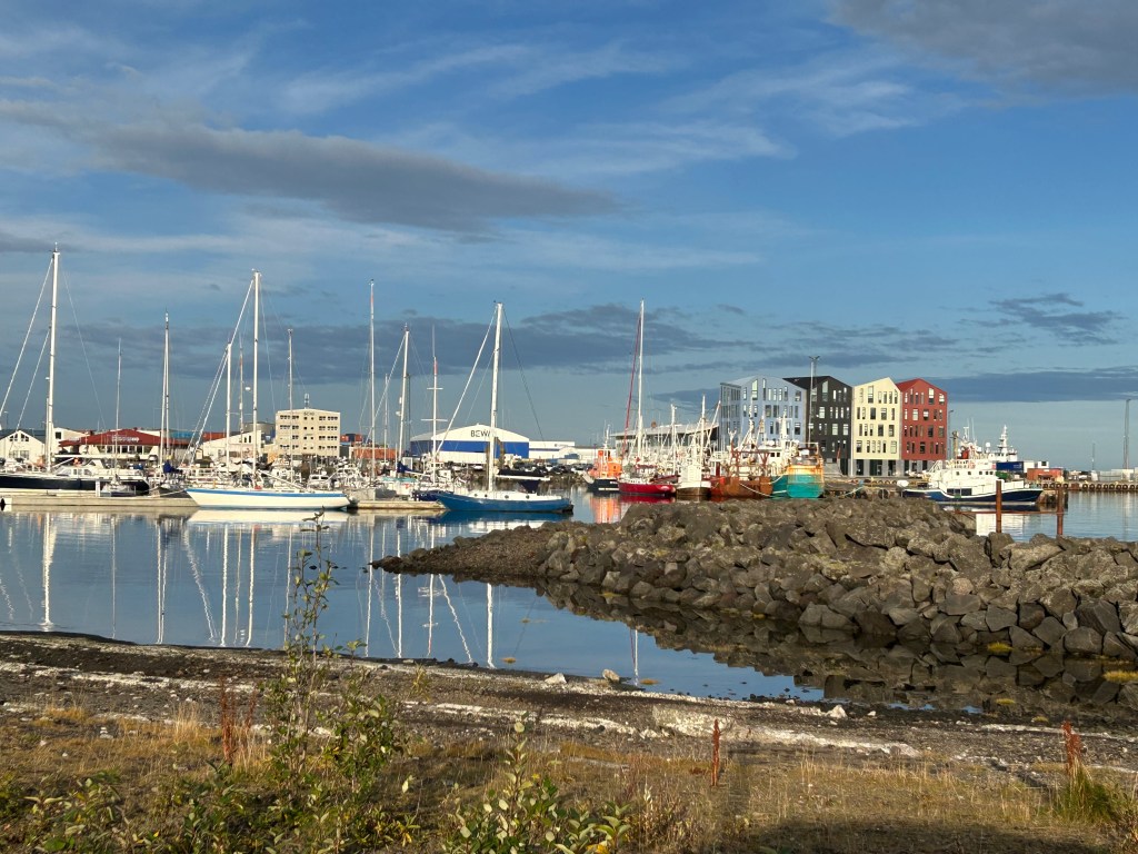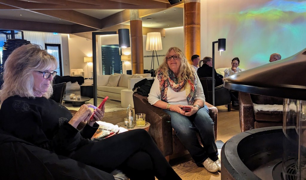 The hotel was welcoming, our room had a super view of the harbour with a high ceiling and a wonderful bed. Of course we napped, then showered, and met Pam and walked to an adjacent food court that had some terrific tasty offerings. Charles’ mussels were a highlight, and Pam’s brie. I can’t remember what I had, but we all enjoyed a glass of wine, then a windy walk, and visited a local museum that featured a multi disciplinary artist, Ragnar Kjartansson. He had one musical piece with an orchestra that really went nowhere, but was rather mesmerizing. Back to that fireplace for a nice drink.