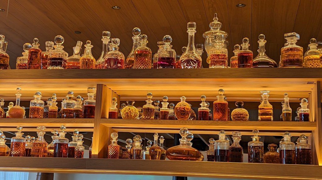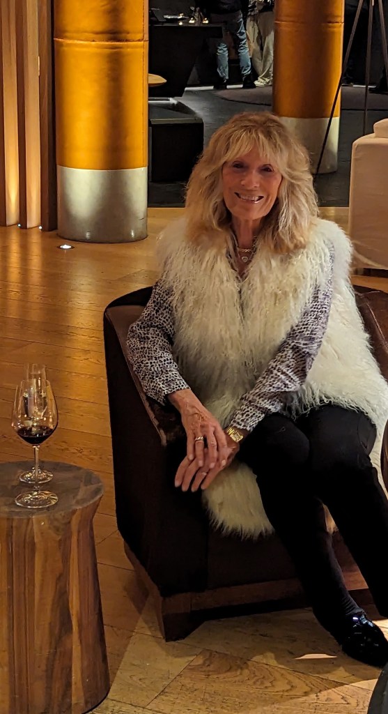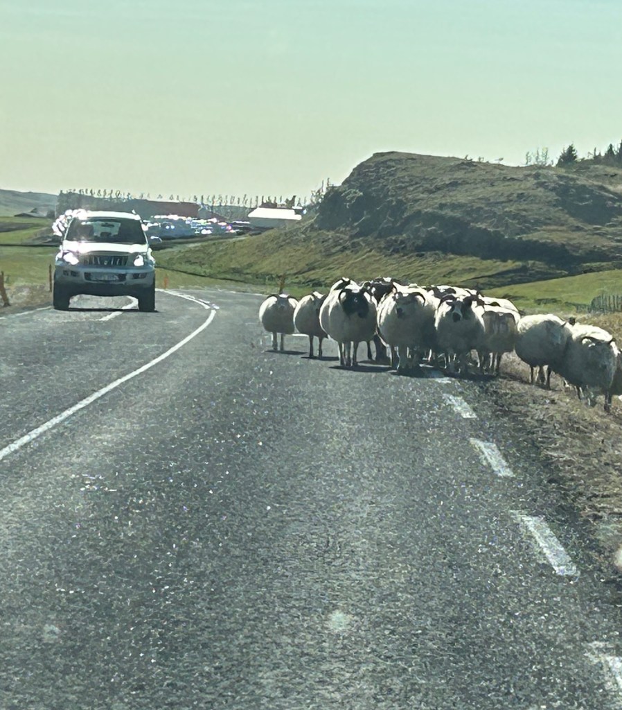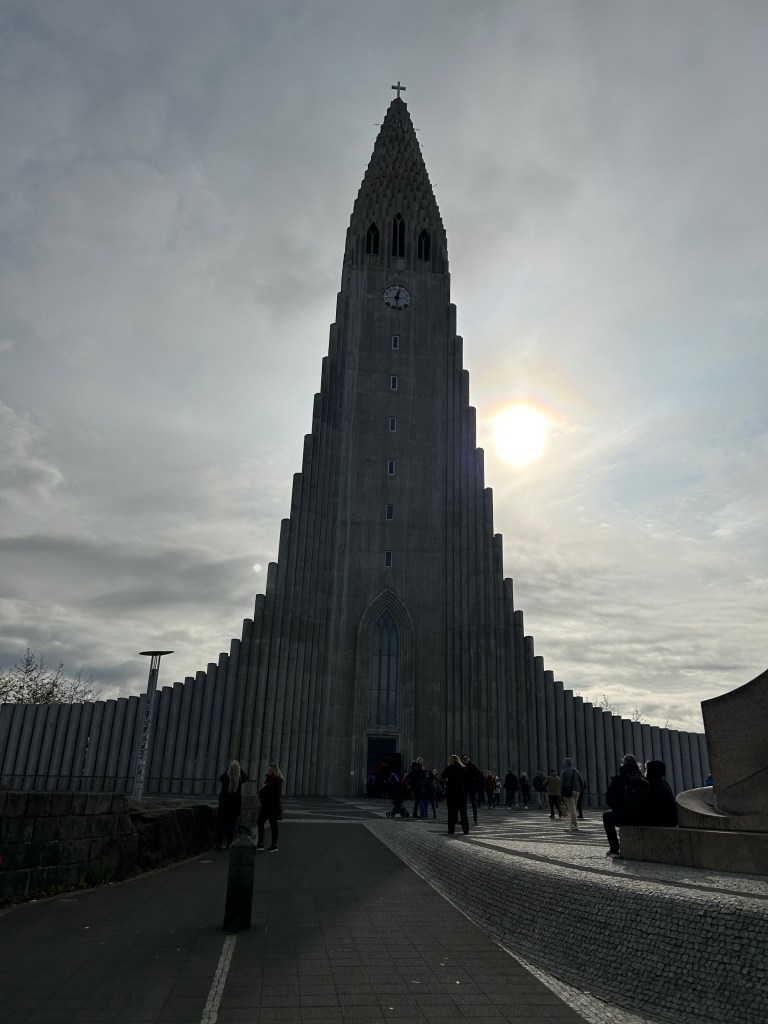 We then hailed a cab to take us to the famous Lutheran church, the Hallgrimskirkja and took the elevator to the top for a splendid view of Rekjavik. The church steeple is very unusual and is 244 ft. tall, the tallest structure in Iceland. Then we walked down the charming town streets, did a bit of shopping, and then to lunch of course, always hungry it seems. Kol, a typical local spot which was brimming with diners welcomed us. The food was super; Charles and I had tacos and Pam had a burger, and apparently it was special, and we took a picture of her eating it, and sent it to her friends. It was enormous and looked delicious. Actually we shared some. Back to the hotel for a rest and then that final evening I booked the restaurant in the hotel, The Tides. The food, atmosphere and service were excellent. I wore my new vest and matched the chairs in the dining room that were covered in sheepskin. We had a wonderful pouilly fuisée, and a pinot noir, that accompanied our great, perfectly cooked lamb. After, we were invited into their hidden, ‘invite only’ speakeasy for cognacs, apparently this was special. It looked like another lounge, but made us feel important.