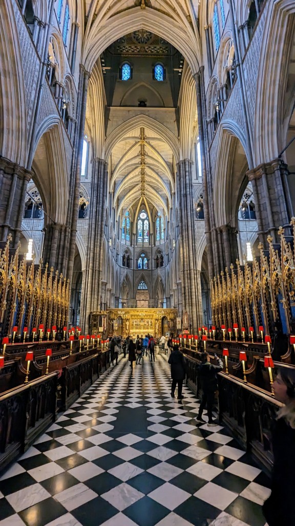 Saturday arrived and we were set to go on our tour with Amanda from Tours by Locals. I had used this company of tour guides many times, and really liked the quality of the tours, the pricing, and the flexibility. I like a private tour and this was perfect with the five of us, and it was to be orientated to Sway. Another great breakfast and then off to Westminster Abbey in a London black cab. They used to be called hackney carriage, and they were perfect for the 5 of us, and fun too because some of the drivers were talkers and good ones, with limey/south English accents, and most importantly knew London. Amanda was easy to spot at 9:00am outside the Abbey. She was terrific, so qualified and knowledgeable. The sanctuary is awesome and Sway particularly liked the tombs. We learned about the Gothic and Romanesque styles of architecture, and although Charles and I had visited previously many years ago with the boys, we learned new things. Corby remembered our trip from 36 years ago, and he even remembered the name of the hotel where we stayed at that time; The Gore. I checked it out and it not surprisingly has been improved greatly since we stayed there. But his memory delighted me. I lit a candle for Carrie as I always do in cathedrals and churches. We spent about an hour there and that was perfect for Sway.