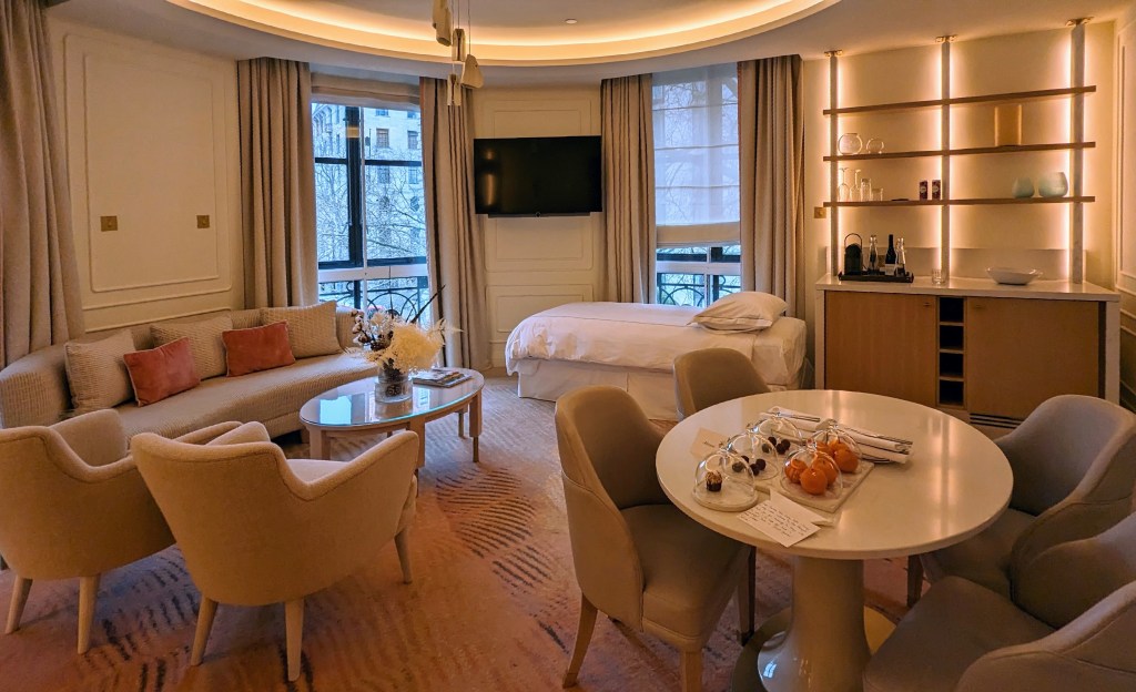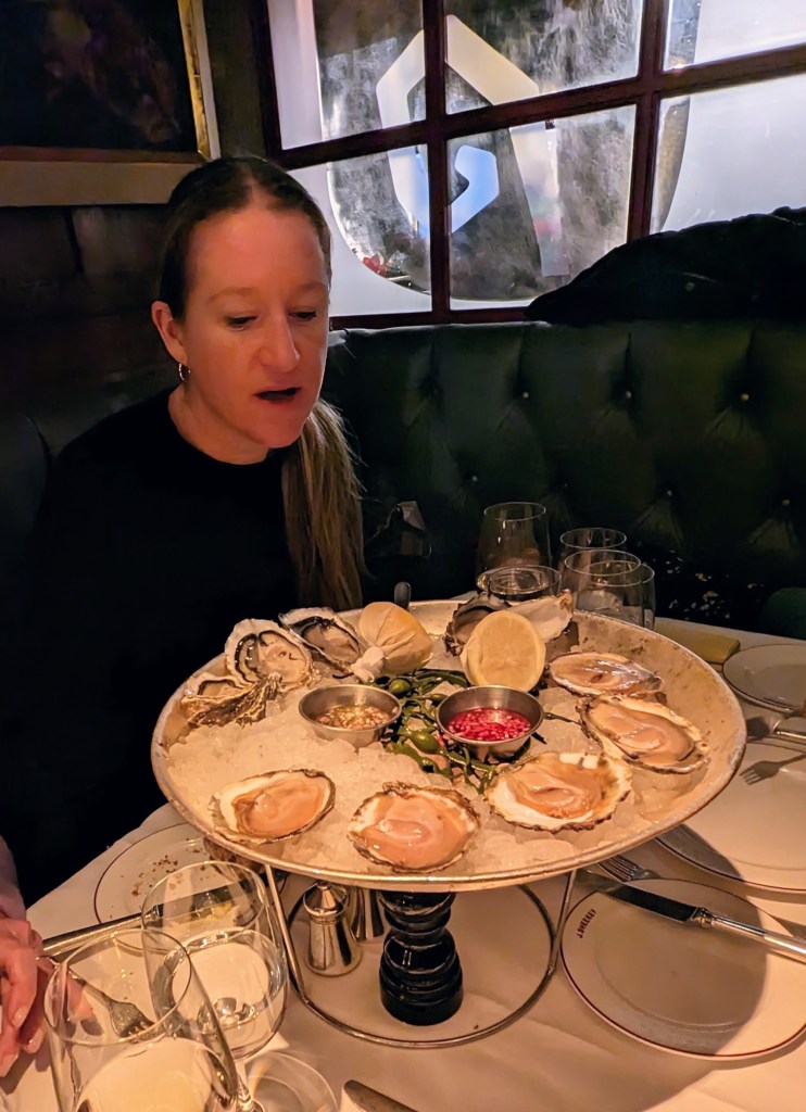 Before the trip I was very ill with a bad cold that triggered a cluster of Menieres attacks. Again Christmas cancelled. The previous year I had Covid at Christmas. And it was cancelled. I was rather stressed about worrying whether I would be fine to travel, and how it would all turn out since I had the responsibility of five people travelling with complex arrangements. As soon as I sat in my seat on the jet for our first flight, and was handed a glass of bubbly, I just relaxed and felt all would be fine. Which it was. We knew that the kids flight was to arrive at Heathrow around 2:30pm, and it would take them a good hour to arrive at the hotel. The concierge alerted us when they were in the car on the way. I had ordered pick ups for us and them.