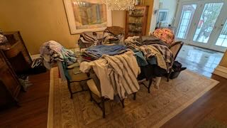 clothes lounging in dining room
