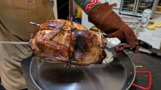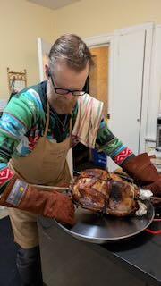 Christmas eve we ate Ethiopian food brought in, and 8 large carrots , milk and a beer were left out for Santa and his crew. The excitement was palpable. We left for our hotel and promised to return first thing in the morning. And at 7:00 when we arrived we were the only ones awake. What a giggle, but soon everyone else joined us including Uncle Niels who we had seen the day before. He was visiting from Gibsons Landing. The joy and excitement of the girls and our own was filling the living room along with discarded wrapping paper. What fun! And then Kate made crêpes that she had prepped until 1:30 am and they were simply delicious. Eventually we departed for our afternoon naps and returned for an excellent Christmas dinner. Corby had brined the turkey overnight and then put it on a rotisserie over the barbecue for a few hours with his special seasonings and although I love my turkeys that I have cooked for years, his was simply the best, very tender, moist and flavourful. Kate made a squash pie and there was stuffing, beans, sautéed brussel sprouts and pies for dessert. We supplied many bottles of wine. What a feast!